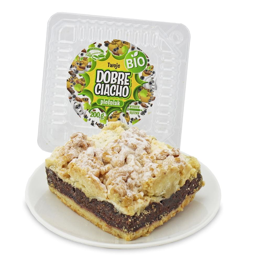 Gandum * Tepung (33 %), Apel panggang * (24 %), Margarin * (15 %) [Air, Minyak kelapa *, Sheabutter*, Minyak bunga matahari*, Pengemulsi: Lesitin (Bunga matahari*), Konsentrat jus wortel*, Konsentrat jus lemon*, Garam laut (0,8%), Minyak lemon*], Gula tebu* (10%), Mousse kismis hitam* (5%) (Kismis hitam*, Konsentrat apel*, Pengental – Pektin), Telur* (5%), Jeli rasa ceri* (3%) (Gula*, Agen pengental: Agar* , Bubuk bit merah*, Pengatur keasaman: Asam sitrat, perisa alami), Kakao* (2%), Tepung kentang* (2%), Baking powder* (1%) [Tepung jagung*, Agen pengembang (Kalium tartrat, Natrium bikarbonat) (* dari pertanian organik terkontrol)