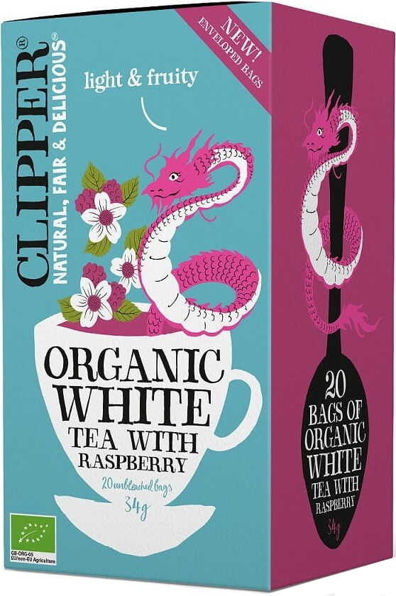 Tè bianco*, aroma naturale di lampone 5%, pezzi di lampone* 1% (*Ingrediente da agricoltura biologica controllata).