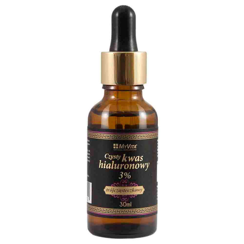 Tugas utama asid hyaluronik adalah mengikat air. Kira-kira 30% daripada jumlah bahan diuraikan dalam badan, dan tempatnya digantikan oleh molekul asid HA baru. Dengan peningkatan usia, bilangan molekul baru berkurangan secara beransur-ansur dan tisu di mana ia ditemui menjadi lemah. Ini paling ketara pada kulit yang menjadi kendur, jatuh, kehilangan ketegangan dan keanjalannya. Hari ini, setiap orang berusaha mengurangkan perubahan yang tidak diingini ini. Untuk tujuan ini, penggunaan serbaguna asid hyaluronik semakin meluas. Produk dari tawaran MyVita adalah serum hyaluron untuk PENGGUNAAN luaran. Ia adalah bahan penting dalam kosmetik. Dengan asid hyaluronik, anda boleh mengurangkan perubahan tidak diingini pada kulit. Ia melicinkan dan melembapkan. Membentuk lapisan pada kulit yang melindungi daripada kehilangan kelembapan. Terima kasih kepada zarah yang lebih kecil, ia membolehkan pengangkutan bahan aktif yang berkesan ke dalam lapisan dalam kulit, meningkatkan keberkesanannya.