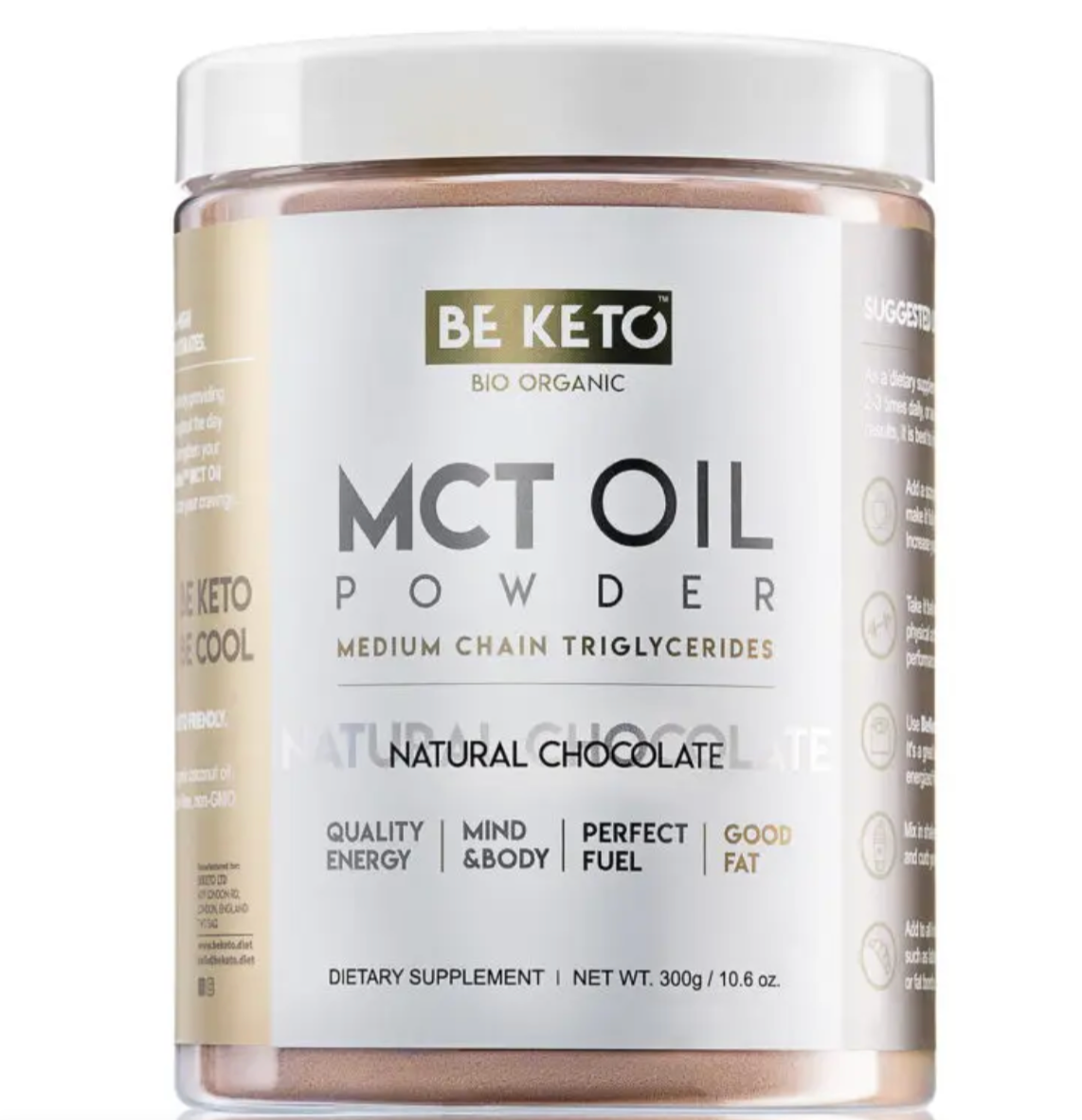BeKeto MCT-oliepoeder met chocoladesmaak 300g is een voedingssupplement in poedervorm dat middellange-keten vetzuren levert, die een waardevol onderdeel zijn van het dieet bij een ketogeen dieet. Het combineert de uitzonderlijke eigenschappen van MCT-olie met een aangename chocoladesmaak, waardoor het ook aan de verwachtingen van de meest veeleisende consumenten voldoet.
