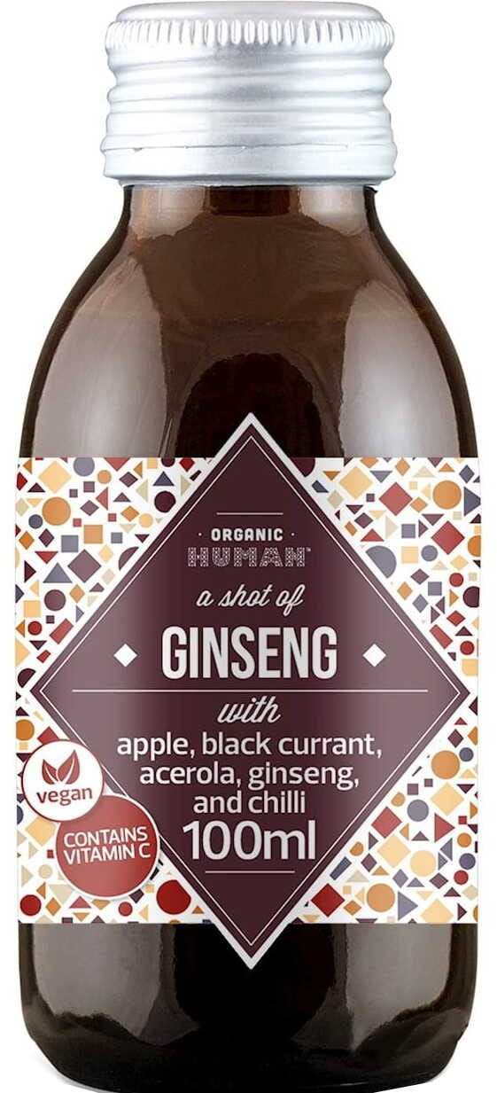 Suco de maçã* (68%), suco de groselha* (21%), suco de aronia* (10,75%), pimenta em pó* (0,1%), canela em pó* (0,1%), ginseng* (0,03%), extrato de menta* (0,02%) (*de agricultura orgânica controlada)