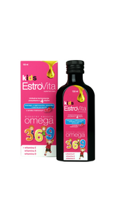 EstroVita KIDS Suplemento alimentar, Ômega 3-6-9 150 ml é um produto que contém ácidos graxos ômega-3, -6 e -9 em proporções ideais. Eles são extraídos de uma fórmula patenteada e uma mistura de quatro óleos vegetais: linhaça, groselha negra, nigela e prímula. Além disso,...- €23,67