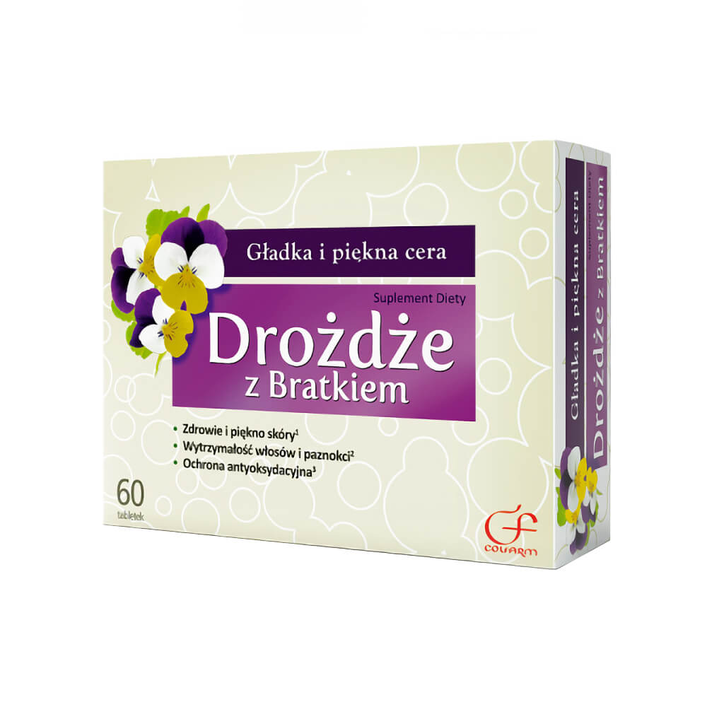 Kosttillskottet innehåller jästextrakt, styvmorsviolextrakt, vitamin E och zink. Jästextrakt hjälper till att bevara hårets och naglarnas rätta struktur och utseende. Styvmorsviolextrakt (trefärgad viol) förbättrar hudens allmänna tillstånd och utseende. Kosttillskottet jäst med styvmorsviol innehåller dessutom vitamin E och zink, som hjälper till att skydda cellerna mot oxidativ skada. Zink har en positiv inverkan på hudens, hårets, naglarnas och hyns korrekta tillstånd.