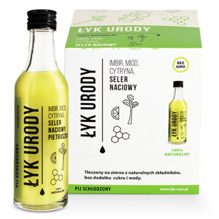 En klunk skönhet är en helt naturlig energistimulant, denna version med tillsats av selleri och persilja. En skott stark energi, försluten i en liten, söt flaska som kommer att få alla på fötter. Drycken kännetecknas av en skarp ingefärston som mildras av en söt-sur smak från kombinationen av honung och citron, samt en angenäm touch av selleri och persilja. Den kan drickas direkt ur flaskan eller tillsättas till te eller cocktail. Den kan också berika smaken av kakor eller såser, särskilt i orientaliska rätter.