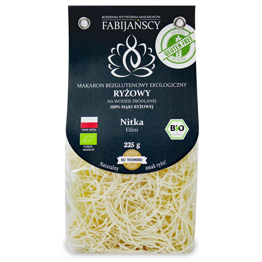 เส้นก๋วยเตี๋ยวข้าว "เส้นเล็ก" Fabijańscy BIO, ปราศจากกลูเตน, 225 กรัม