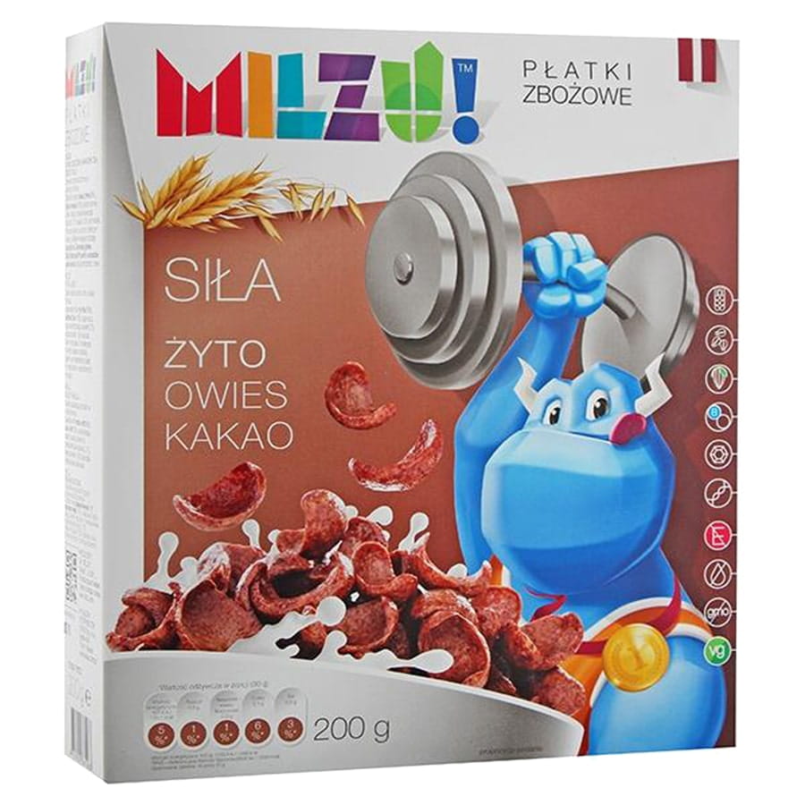 Ngũ cốc ca cao SỨC MẠNH của thương hiệu gia đình Latvia MILZU! là sản phẩm ngũ cốc lúa mạch đen - yến mạch làm từ bột lúa mạch đen nguyên cám, bổ sung bột yến mạch nguyên cám, nổi bật với hàm lượng chất xơ và beta-glucan cao. Sản phẩm chứa vitamin nhóm B (B1, B2, B5, B6) giúp điều hòa quá trình trao đổi chất, lượng protein dồi dào (17g trong 100g) và các khoáng chất cần thiết cho dinh dưỡng trẻ em: kẽm, magie, sắt và phốt pho. Thành phần ca cao còn cung cấp thêm canxi, crom, đồng và polyphenol, mang lại cho ngũ cốc đặc tính chống oxy hóa và kháng viêm.